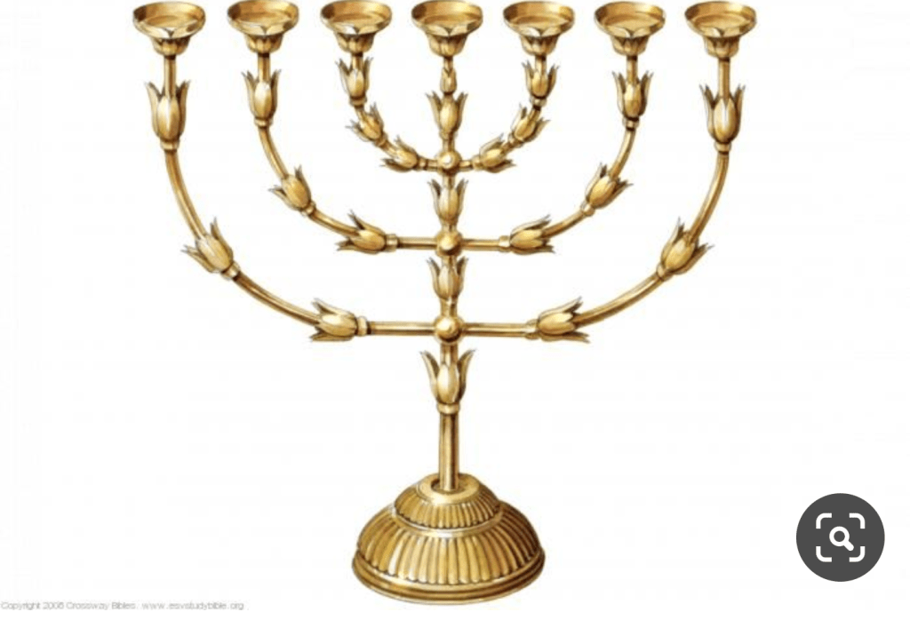 This would have been the second innermost compartment of the Tabernacle. Elizabeth’s notes pointed out that the lampstand would have been the only source of light in this Holy Place. The material used for the tent would have been thick, so that the chamber would be completely dark, except for the light of the lampstand.